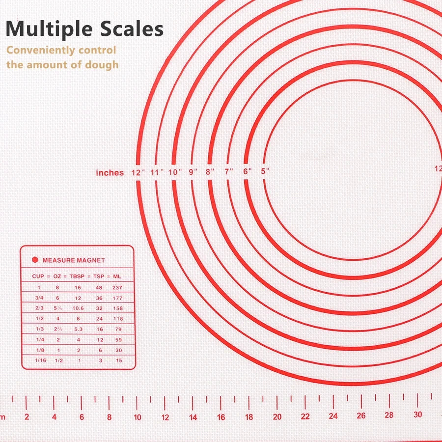 Generous Size: With dimensions of 20x16 inches, this large pastry mat offers ample space for rolling out dough for pies, pizzas, cookies, and more, keeping your countertops clean and organized.